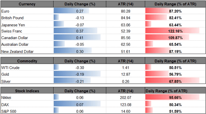 With that said, market participants are likely to pay increased attention to the Fed’s Summary of Economic Projections (SEP) as officials note ‘that it would likely be appropriate in the not-too-distant future to revise the Committee's characterization of the stance of monetary policy in its postmeeting statement,’ and projections for a neutral rate of 2.75% to 3.00% may ultimately dampen the appeal of the U.S. dollar as it dampens bets for an extended hiking-cycle.